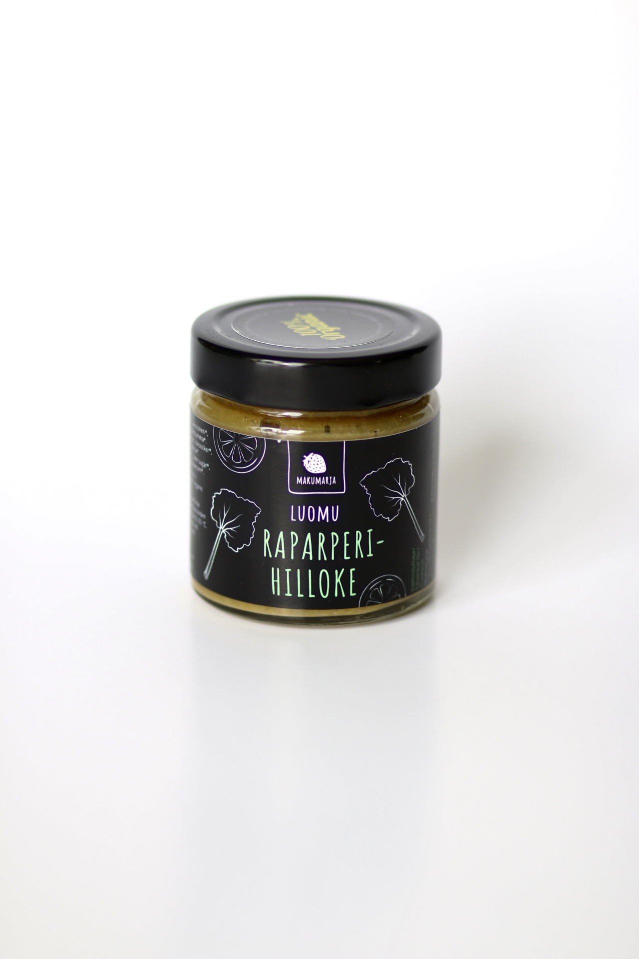 Ainesosat: luomuraparperi, luomuruokosokeri, luomusitruunamehu, luomukaneli, luomukardemumma.